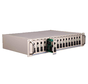 T200-K16網管型機架式光纖收發器采用靈活的模塊化設計,整機為16槽位2U機箱,由電源模塊和標準的熱插拔模塊構成。產品與多種光纖收發器子卡配套使用,可插入百兆電口、百兆光口、千兆電口、千兆光口等多種接口的子卡,適用于不同應用現場的需求。